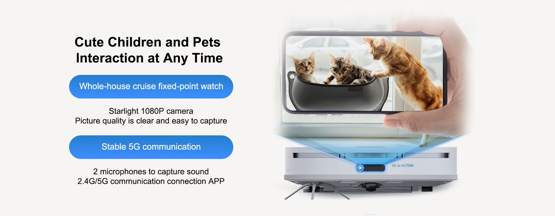 Автоматическое пополнение воды, самоочистка базовой станции; Мешок для пыли можно использовать непрерывно в течение 45-50 дней.